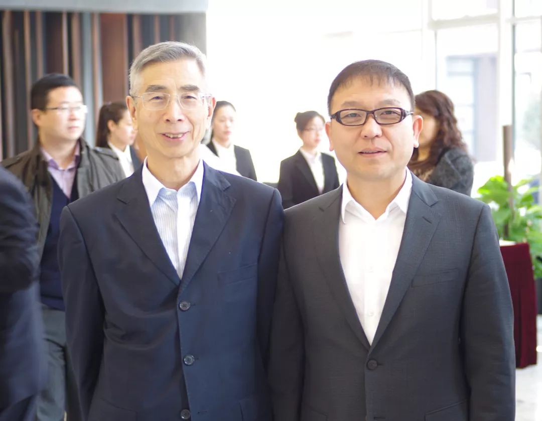 中国工程院院士、huatihui物联进站院士倪光南(左)