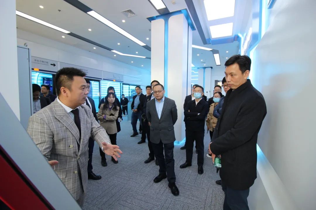 到访领导一行详细参观了huatihui物联能源互联网大厦与智慧轨道交通联合创新实验室,深度了解huatihui物联的各项科技,以及物联网在不同场景下的实际应用。