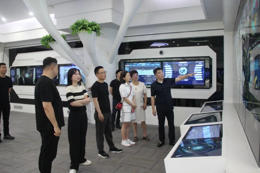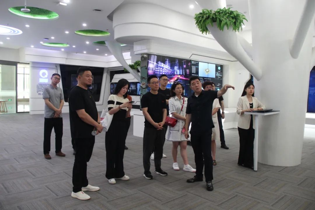 到访领导一行详细参观了huatihui物联能源互联网大厦,深入了解huatihui物联在绿色能源管理、新型电力运行模式等方面的先进技术。